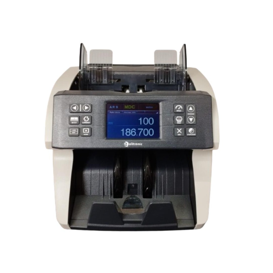 Su bandeja de entrada admite hasta 200 billetes y su diseño compacto facilita su integración en mostradores. Dispone de pantalla LCD clara y botones de control para seleccionar modos de conteo, lotes y diferencia. Su tecnología la hace ideal para trabajar con eficacia, sin sacrificar precisión ni rendimiento.
