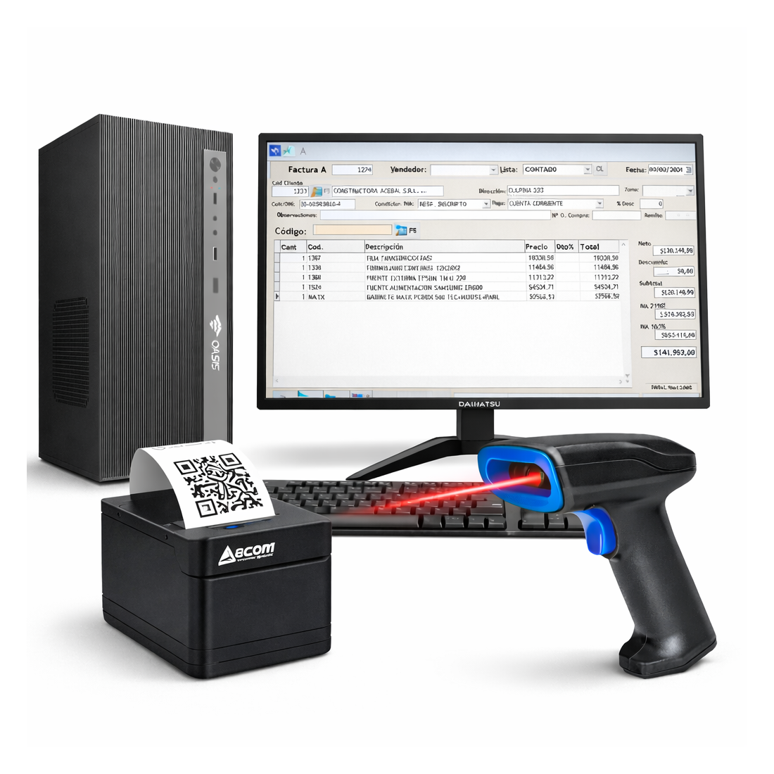 El Combo Facturación Total ZETEK es la solución más completa para tu punto de venta: PC Intel Core i3, monitor, impresora térmica OCOM, escáner de códigos y software de facturación electrónica homologado por ARCA. Ideal para comercios que buscan rapidez, confiabilidad y soporte técnico especializado.